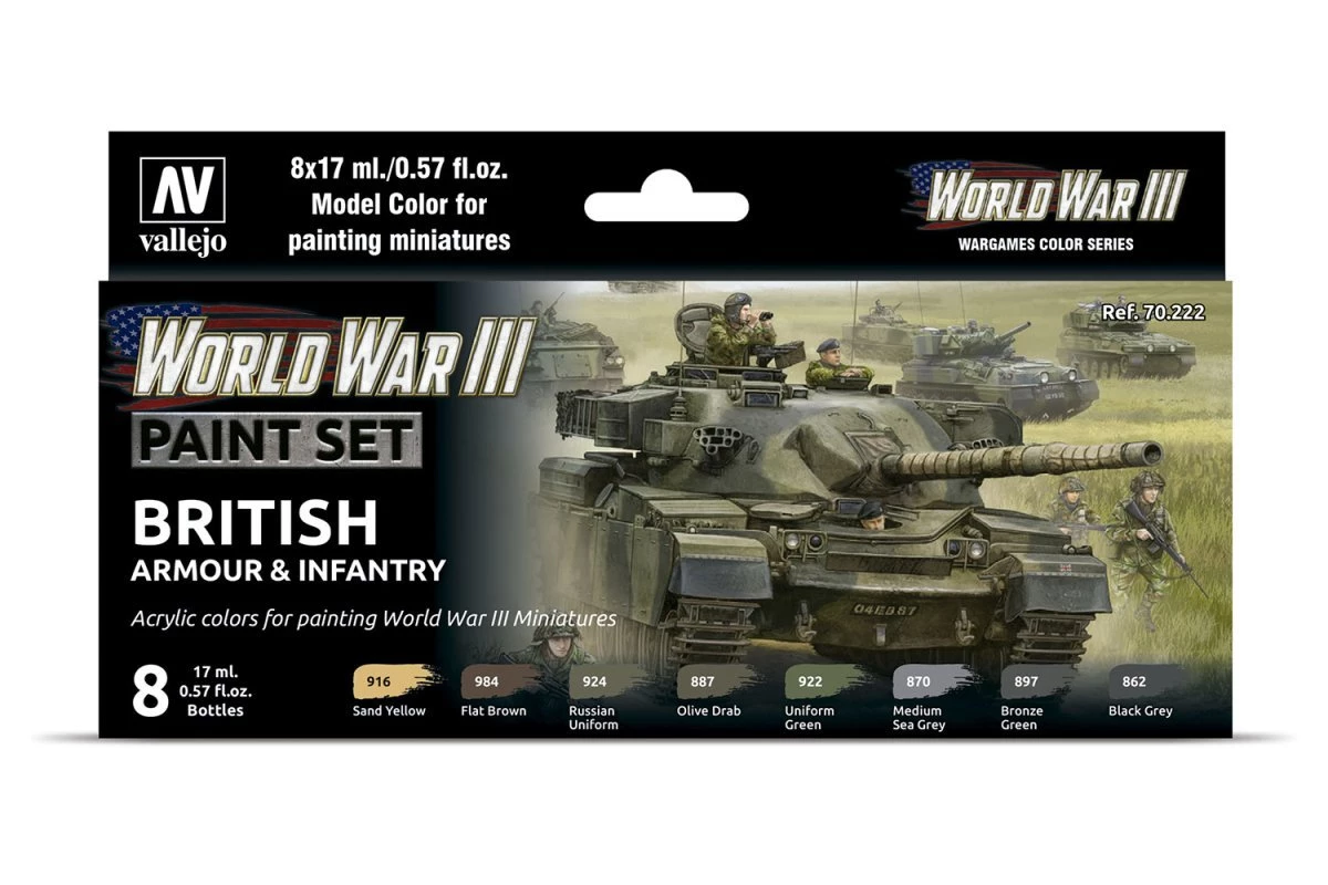 This paint set, when combined with the Utility Paint Set, contains all the colors needed to paint your British army infantry and aircraft.