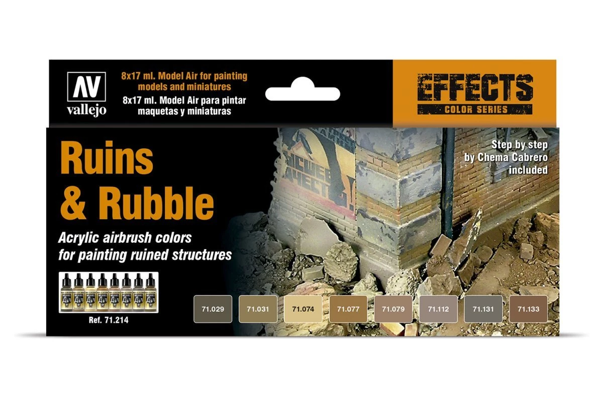 Selection of Model Air colors, especially formulated for painting buildings and unpaved roads; ruins, rubble and stone floors or tiles, in a city or in rural environments. Step by step by Chema Cabrero included.